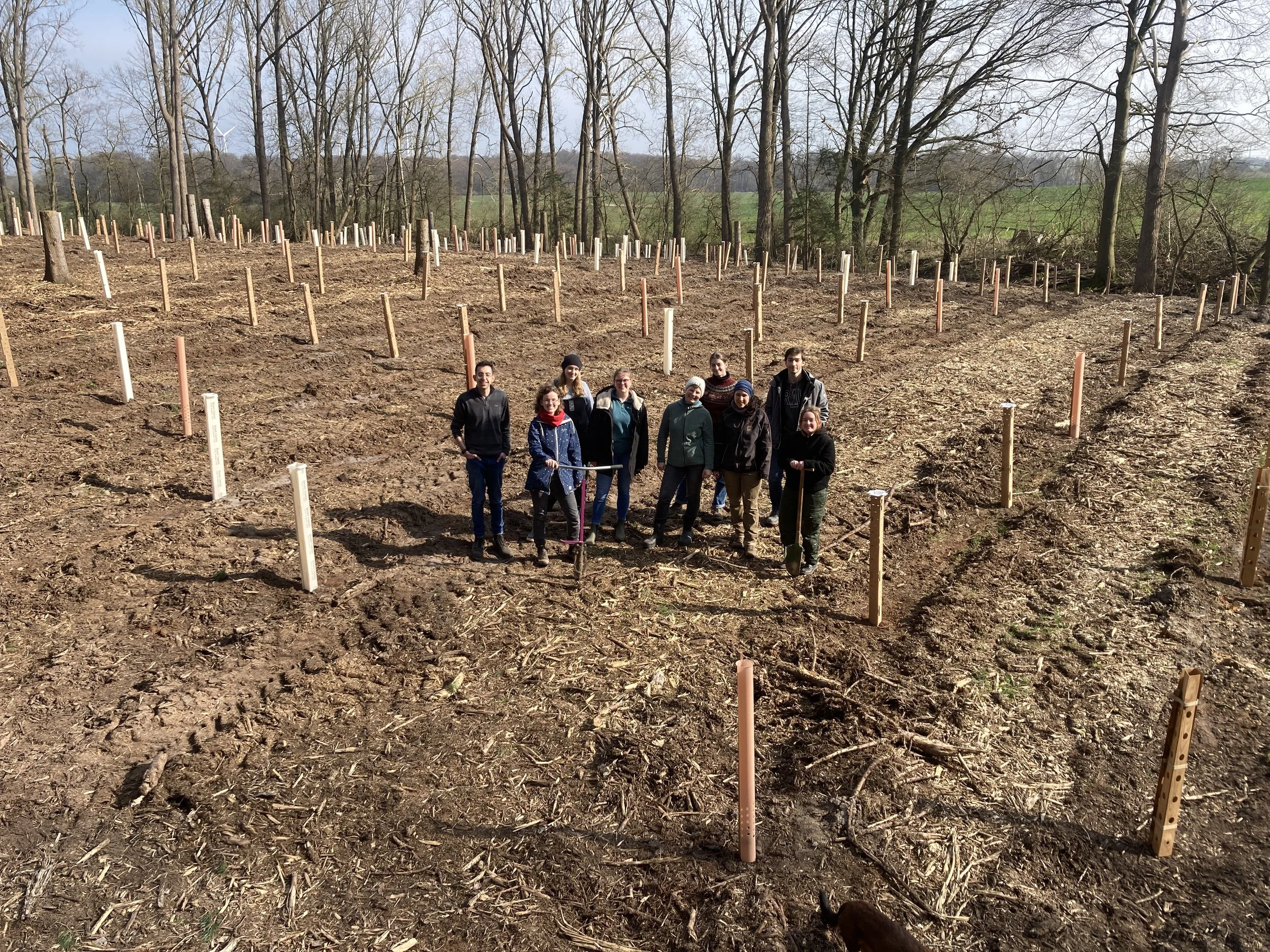 März 2024 Zum Jahreswechsel haben wir auf Geschenke verzichtet und unterstützten stattdessen die Aufforstung in MV. Nach unserer Spende im Dezember konnten wir nun ca. 400 Bäume in der Nähe von Teschow pflanzen. Die Fläche war zuvor mit Fichten bestockt, doch durch Dürre und Borkenkäfer waren viele Bäume abgestorben. Unter Anleitung des Försters pflanzten wir nun klimastabile Laubbäume, wie beispielsweise Sandbirke, Esskastanie, Baumhasel oder Schwarznuss.